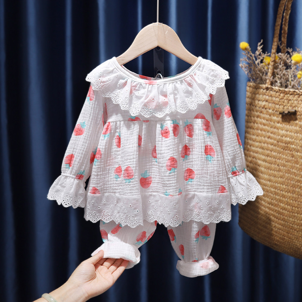 Girls pajamas set 2022 new spring cotton comfortable cute sweet cartoon princess home clothes two-piece set