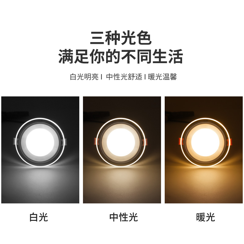 LED cylinder light 5W2 5 inch 3 5 inch recessed light panel Three-color change light ceiling Home overhanging ceiling ultra-thin hole light