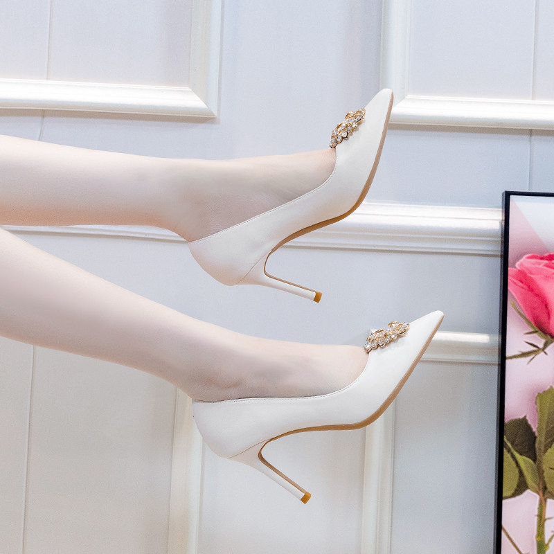 Wedding shoes 2020 new wedding wedding bridal shoes Dilireba with the same style pointed toe stiletto white high heels women