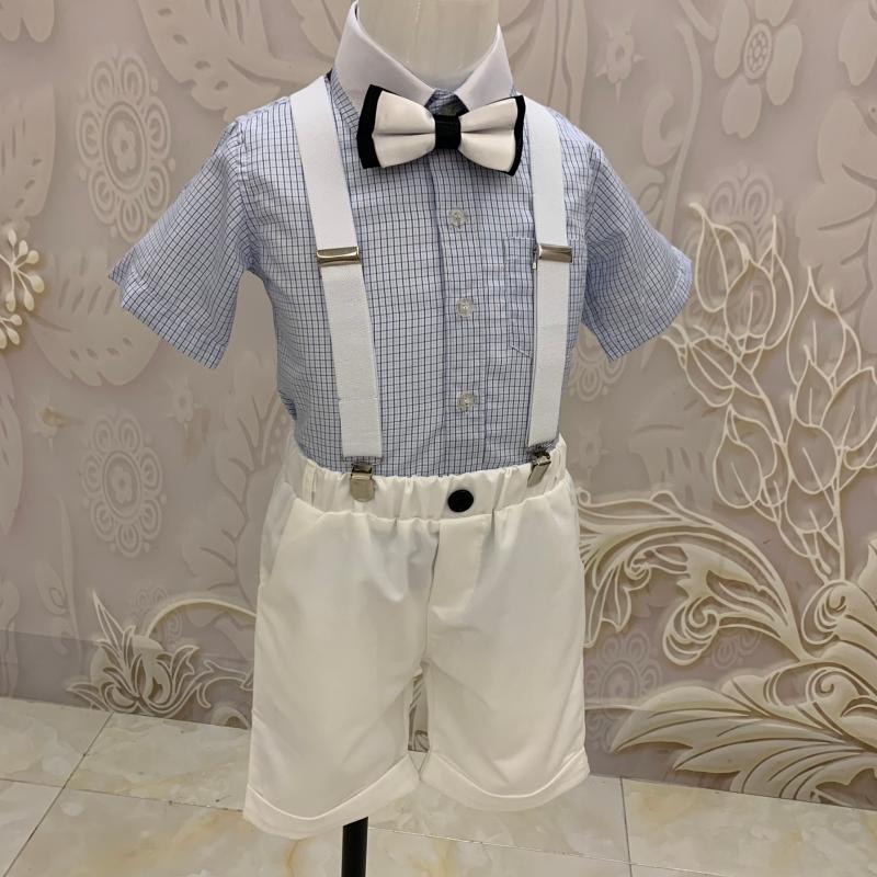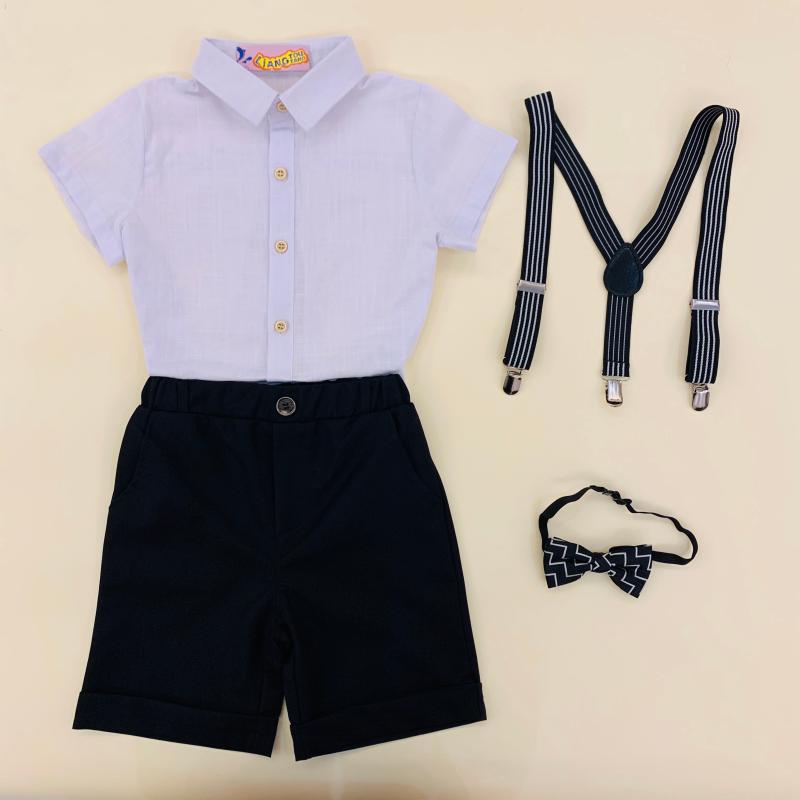 Single piece black shorts single piece white shirt shorts shirt shorts collar tie shirt shorts collar with baby bag pink shirt holding baby bag 4 pieces of blue shirt holding baby bag 4 pieces