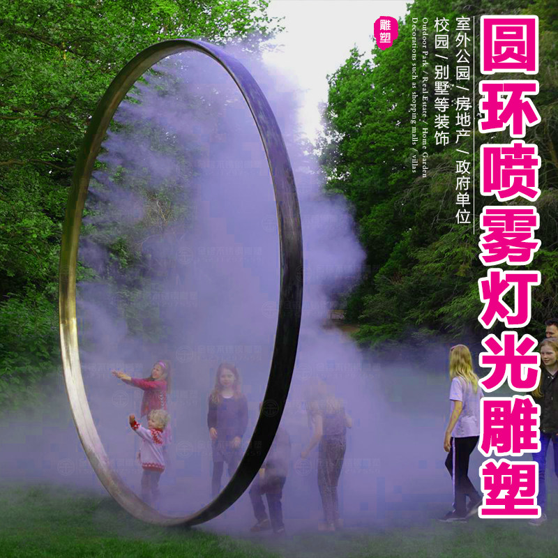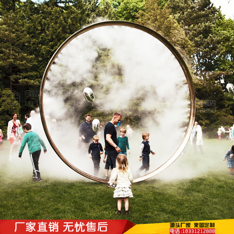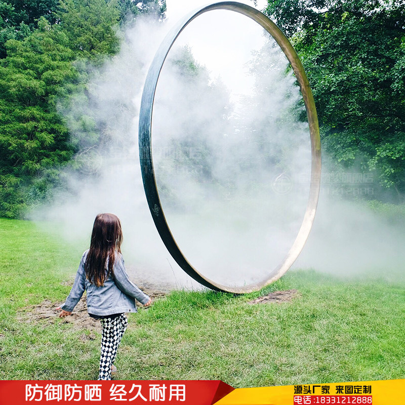 Outdoor garden stainless steel circular spray sculpture customized mirror luminous moon abstract hollowed round swing