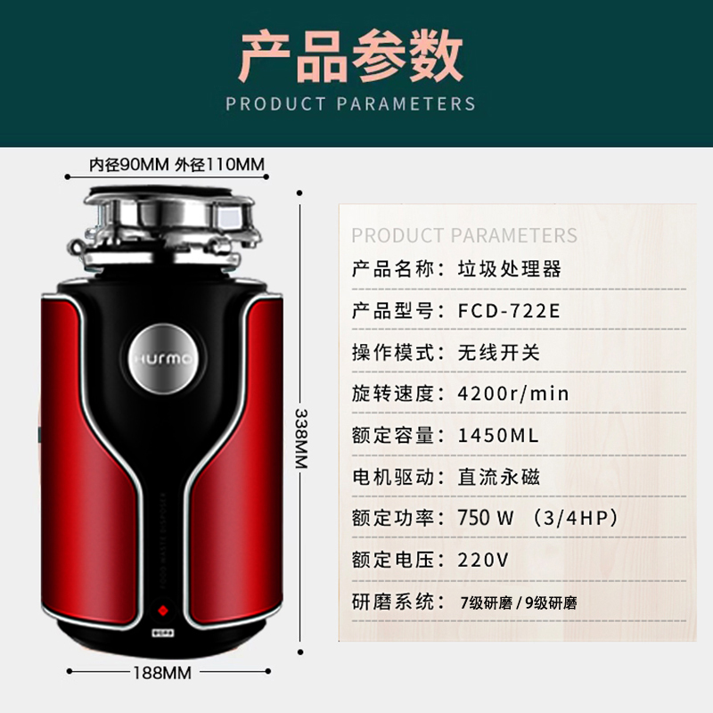 German Food Waste Processor Home Kitchen Sewer Sink Fully Automatic Commercial Kitchen Waste Shredder Broken Bone