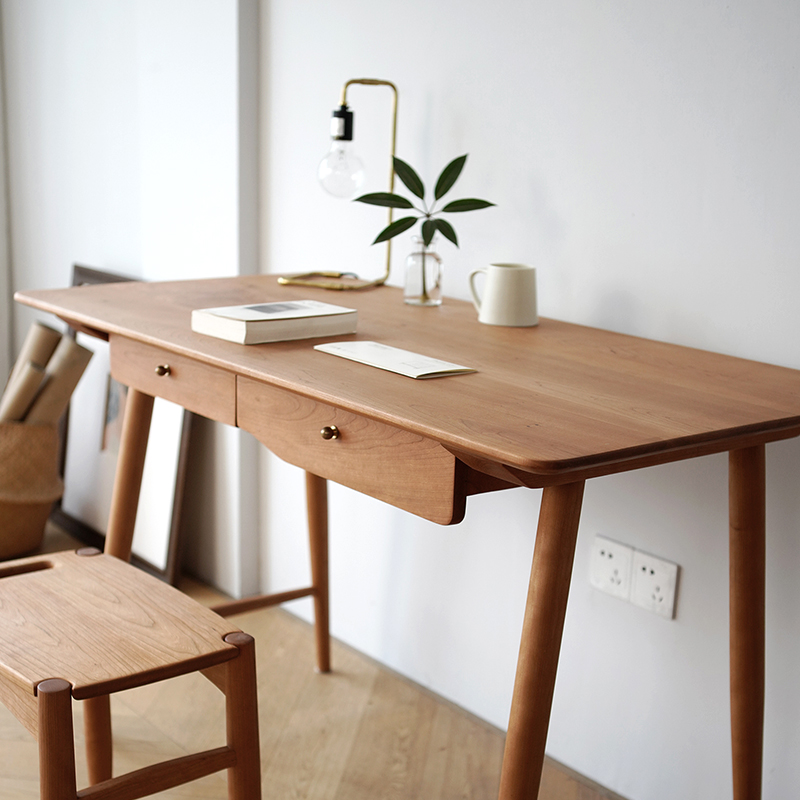 Its Fabled Living Small Household Day Style Nordic Minimalist Cherry Wood Solid Wood Desk Writing Student Learning Table