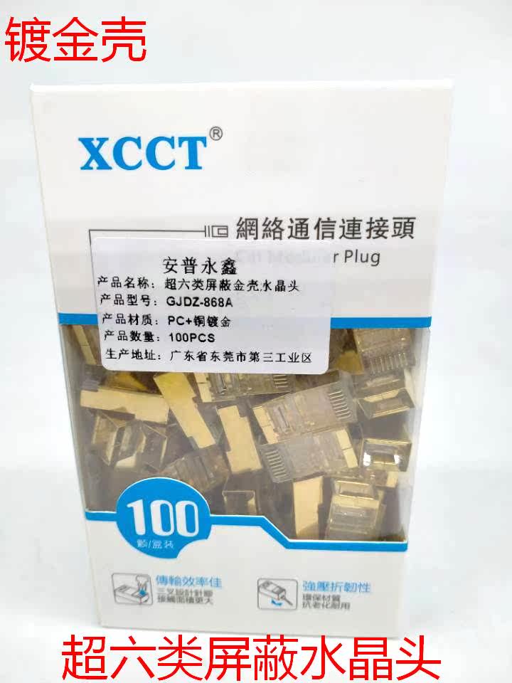 Anpu Yongxin Ultra Six Type Shield Crystal Head Gold Plated Shell 8 Core Pure Copper 6 Class Crystal Head RJ45 Head National Standard