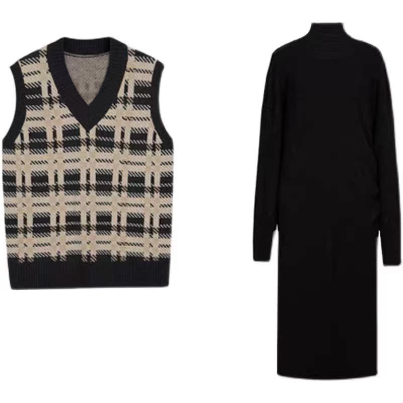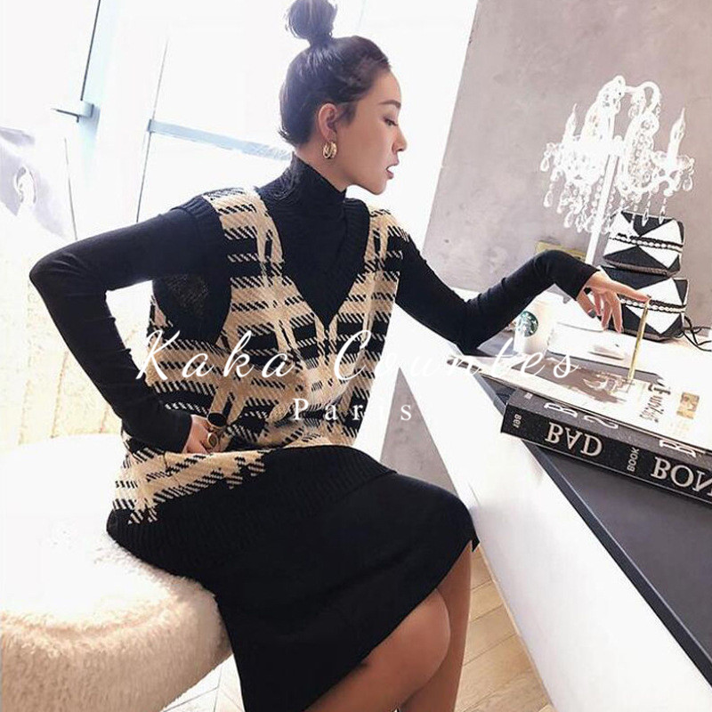 Sandro Moscoloni autumn new small fragrance dress suit sweater vest skirt two-piece women