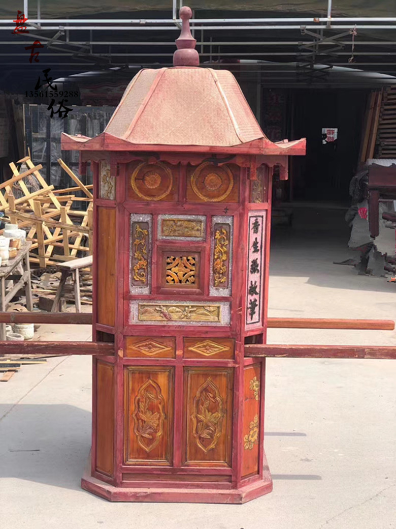 Nostalgic retro old-fashioned sedan chair imitation ancient lift sedan four people lift Chinese-style carving sedan folk custom display old objects
