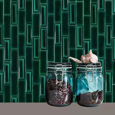 Retro ice crack handmade brick powder room tile Dining room kitchen wall brick concave and convex noodle-shaped shaped brick Dark green