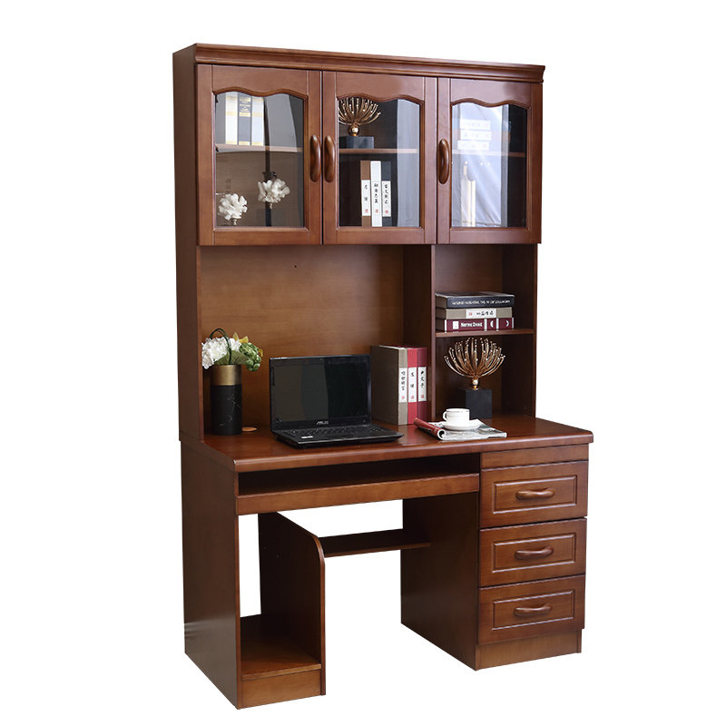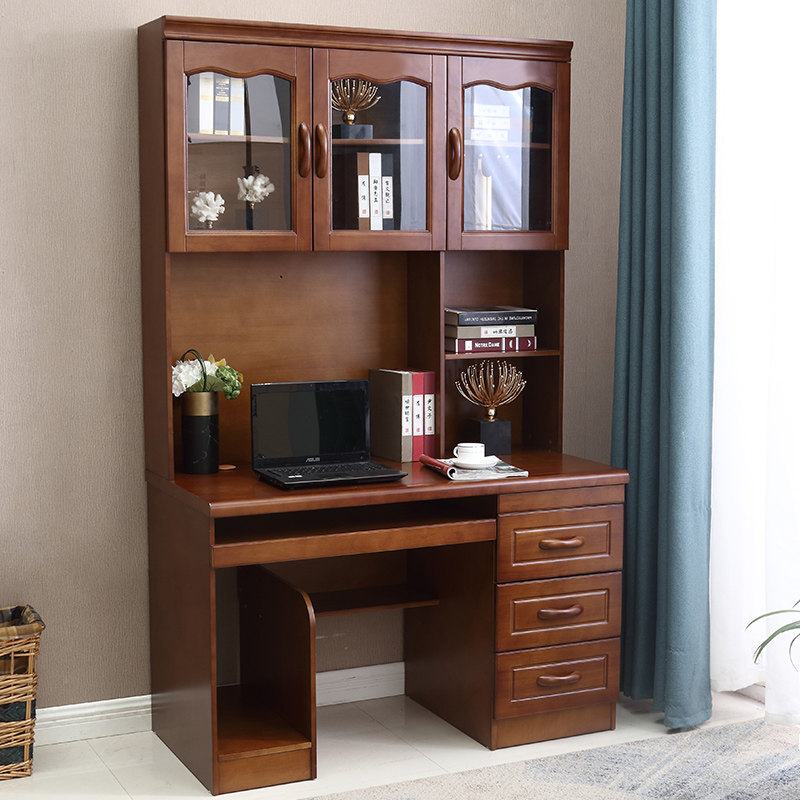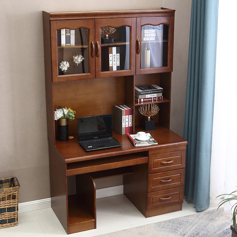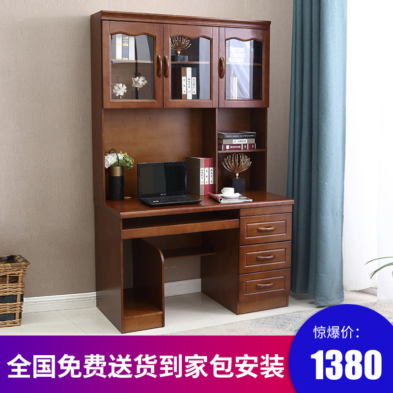 Solid wood desk 1 1 2 1 4 meters desk with bookshelf cabinet integrated combination home student writing desk computer desk