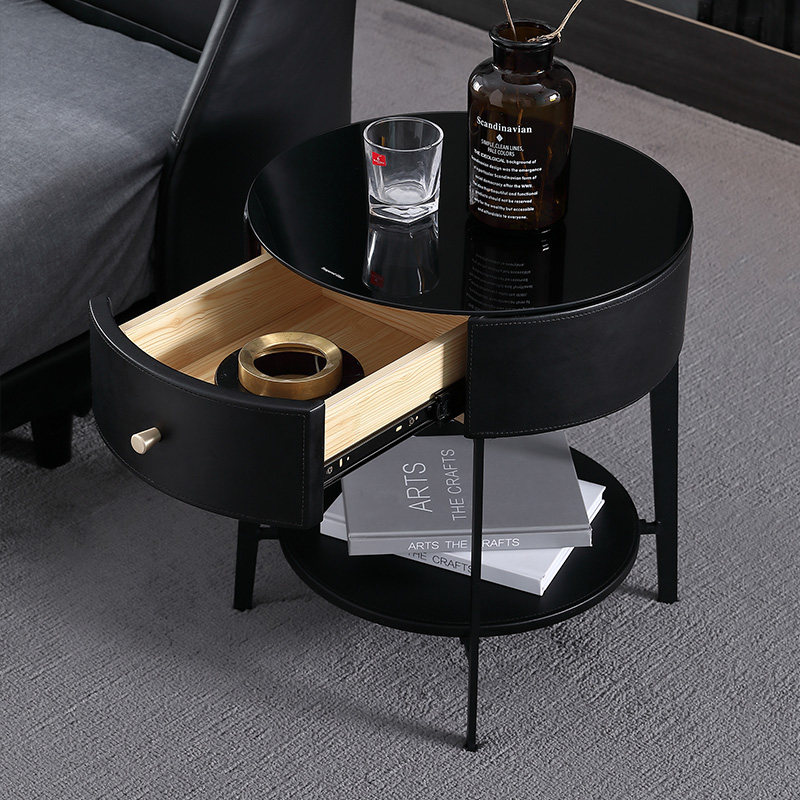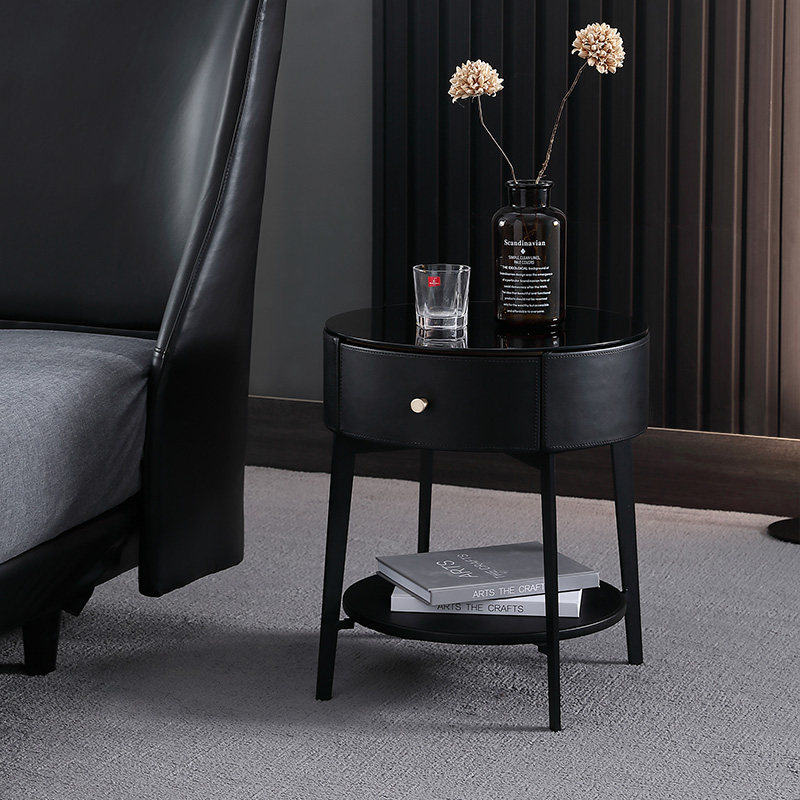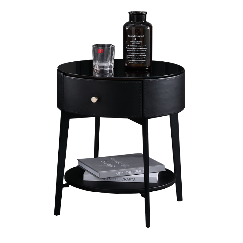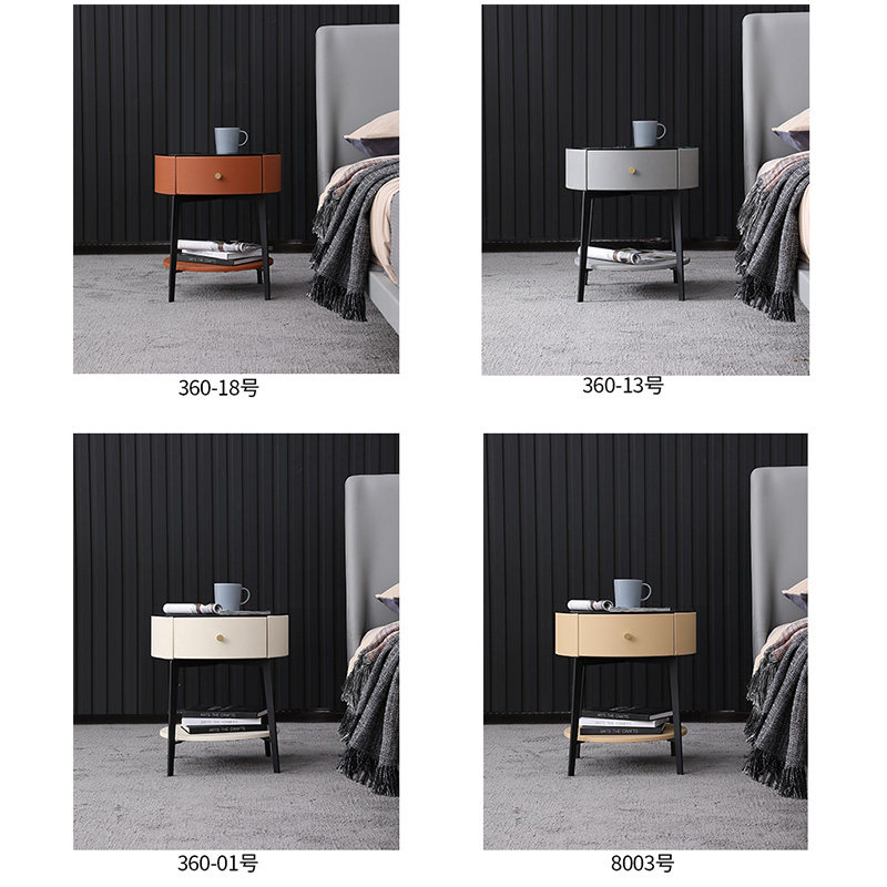 Modern minimalist bedside table Nordic light luxury style ins wrought iron leather soft package round bedroom bedside cabinet shelf - Taobao
