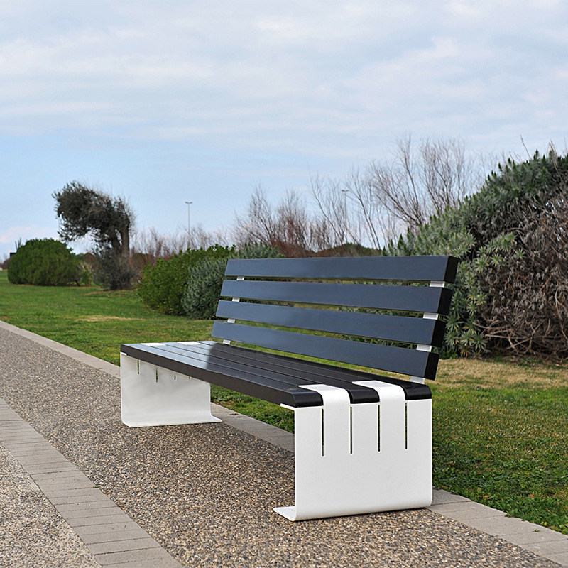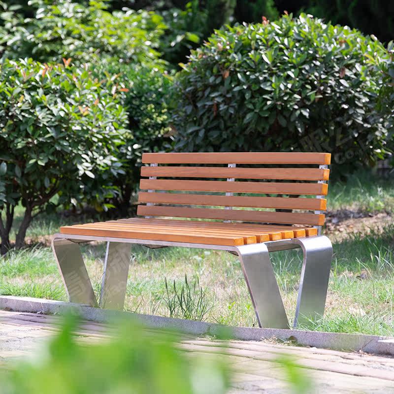 Park chair outdoor bench anti-corrosion stainless steel solid wood long chair garden scenic square leisure back chair bench