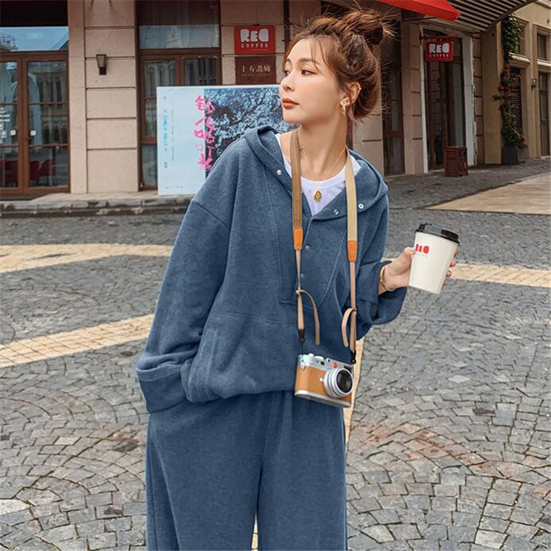 Valley Seven GUQIQI2023 Spring autumn season Leisure Lianhood suit women's Korean version loose with two sets of wide-legged pants-Taobao