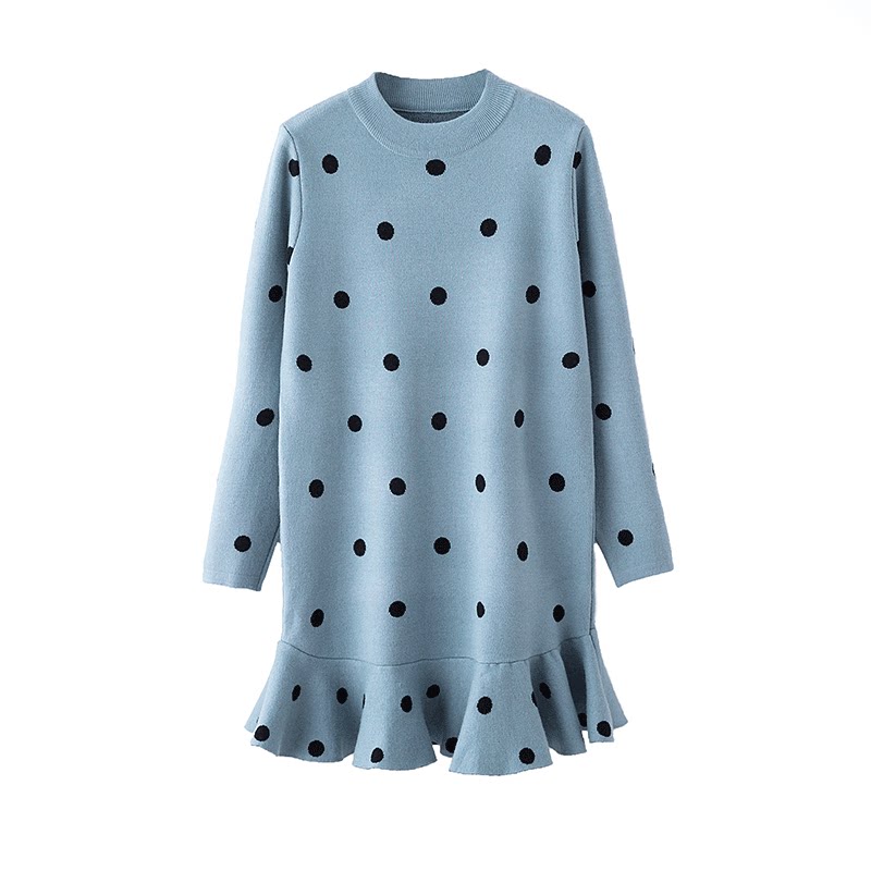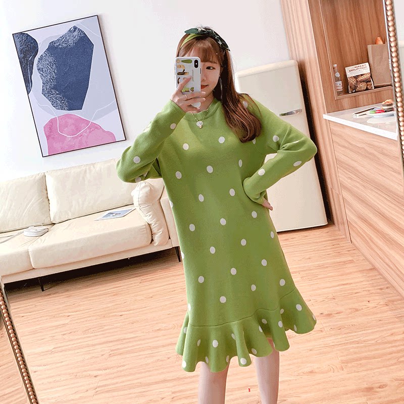 Autumn new fashion trendy mom polka dot maternity sweater Korean version large size fat mm long-sleeved fishtail skirt thickened top