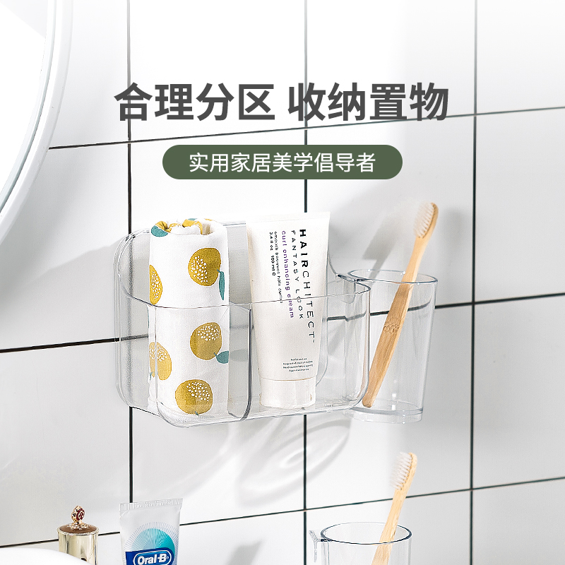 Toothbrush Gargle Cup Shelve DRESSING ROOM HANGING WALL DENTAL CYLINDER SUIT ADHESIVE-FREE COUPLES HOME NET RED