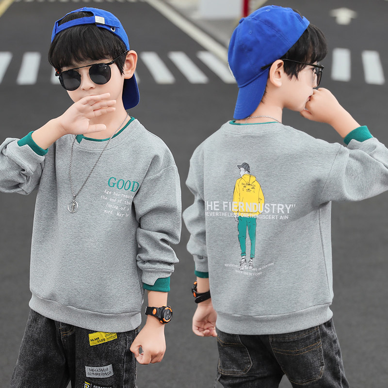 Boy Fashion Boy T-shirt Spring Autumn Clothing 2022 New Thick Cotton T Ocean Send Boy Springtime Jersey Blouses Big Boy Tide