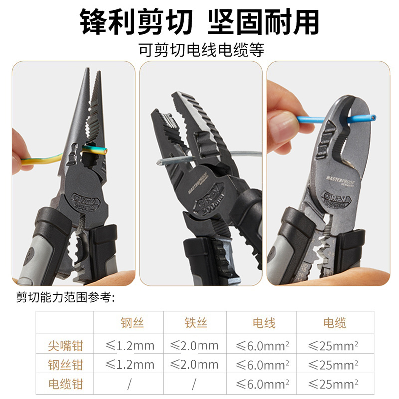 Meath Industrial Grade Wire Pliers Multifunction Tiger Cut Wire Pliers Cable Cut Five Gold Tool Electrician Sharp Mouth Pliers
