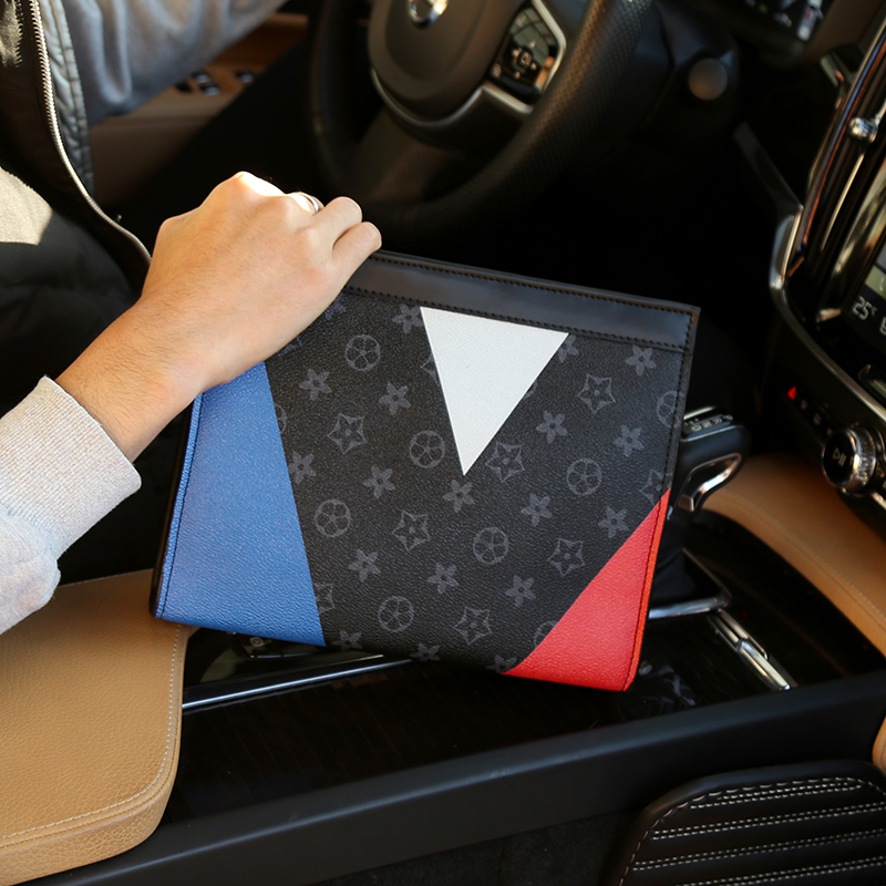 Hong Kong net red large capacity business men's clutch red, white and blue casual wild printing hand grab bag clip bag money