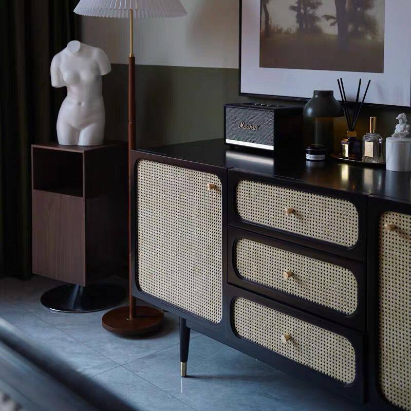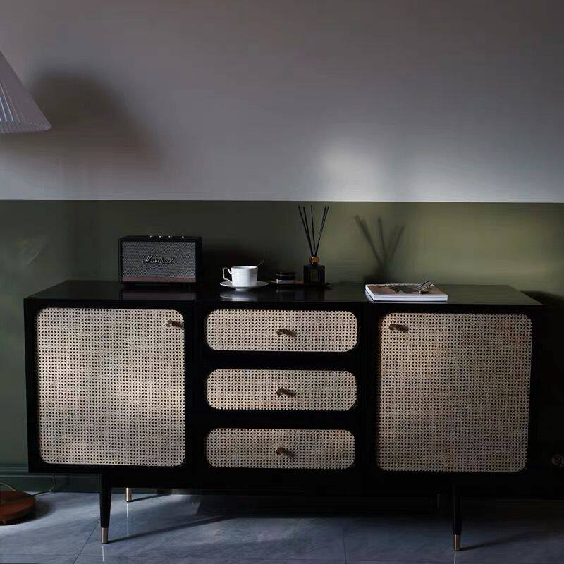 Nordic solid wood rattan door dining cabinet multi-purpose cabinet modern minimalist tea cabinet small apartment living room porch storage cabinet