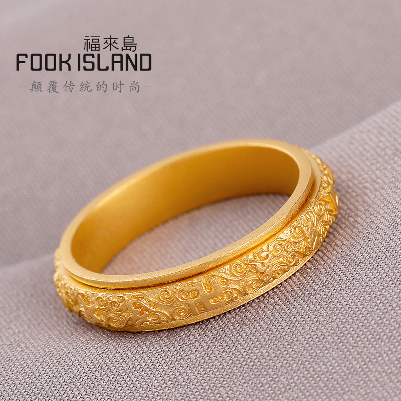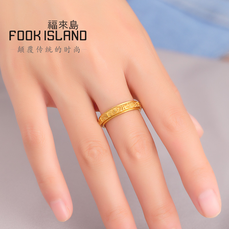 Fulai Island gold ring pure gold 999 ancient law gold six-character mantra Daming curse prime gold wedding ring pair ring for men and women