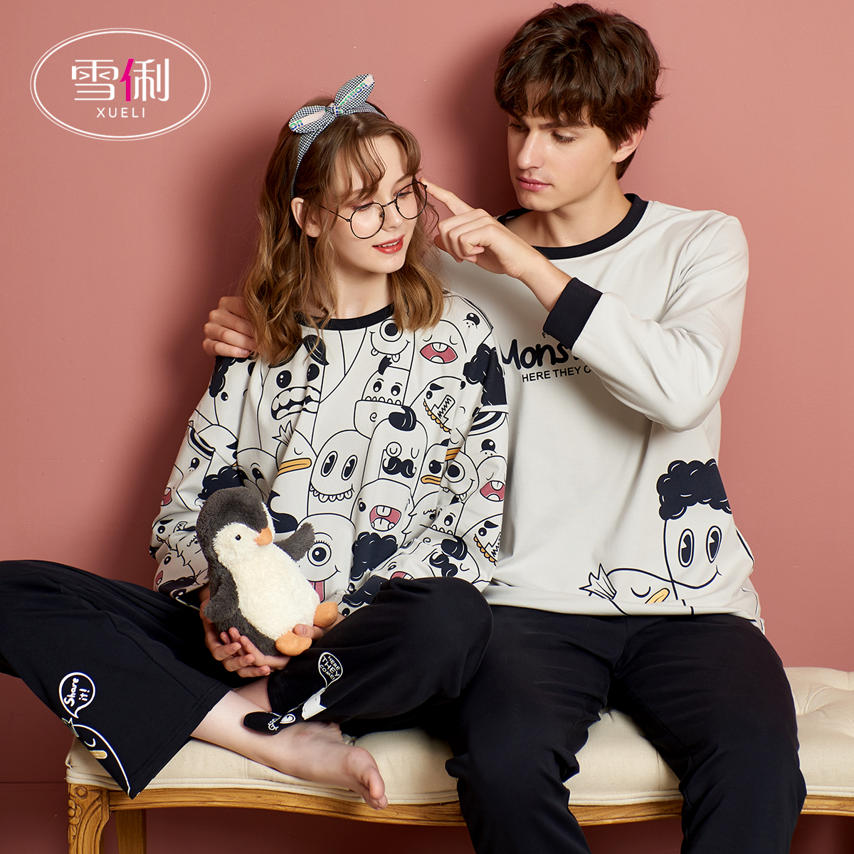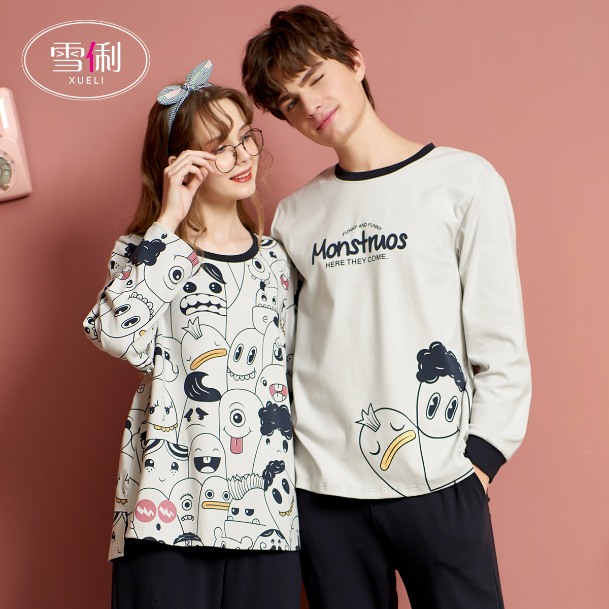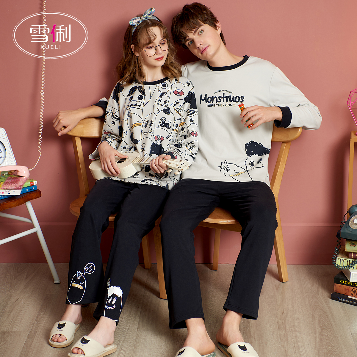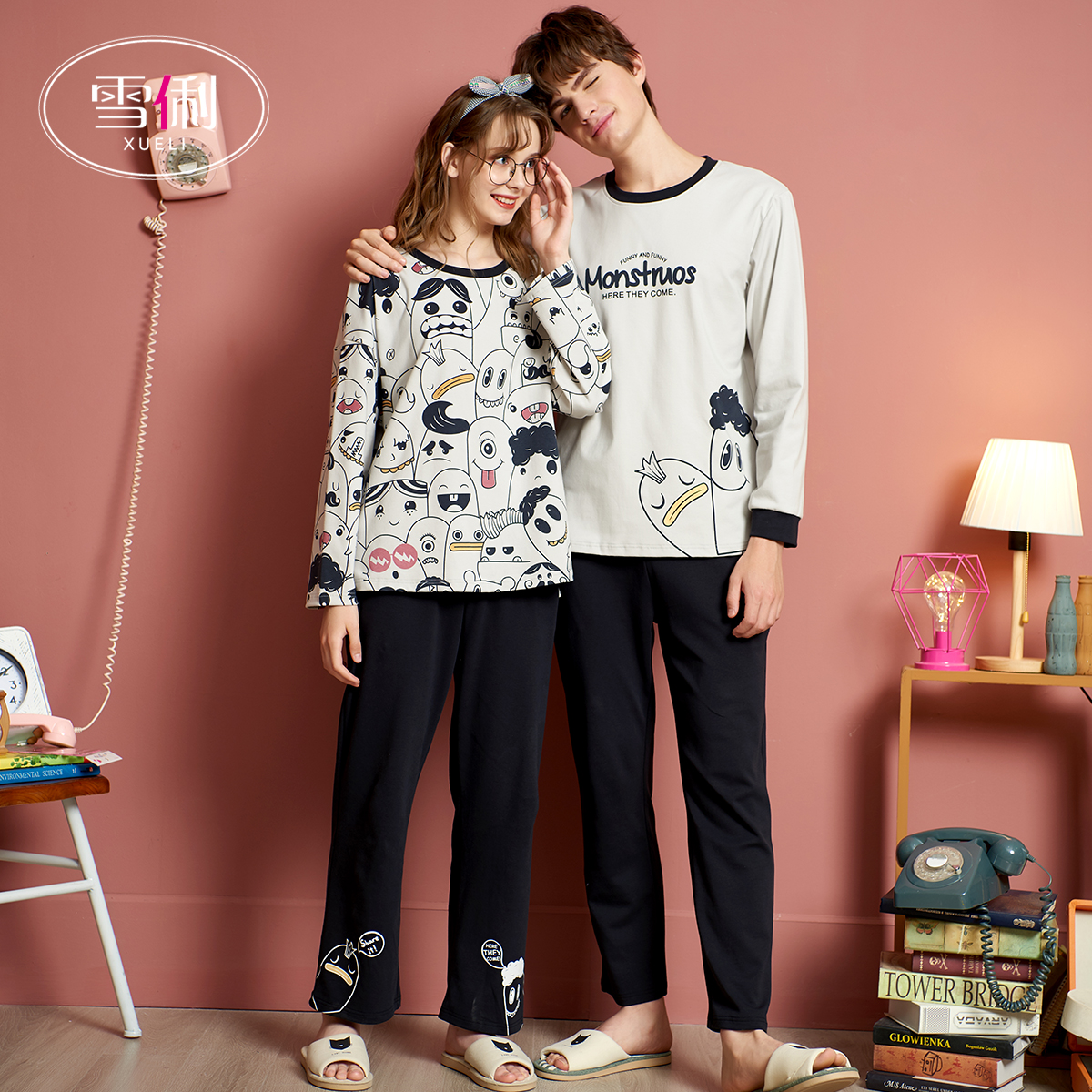 Snow Li pajamas men spring and autumn cotton long sleeves large size medium thick couples wear round neck ladies loungewear suit