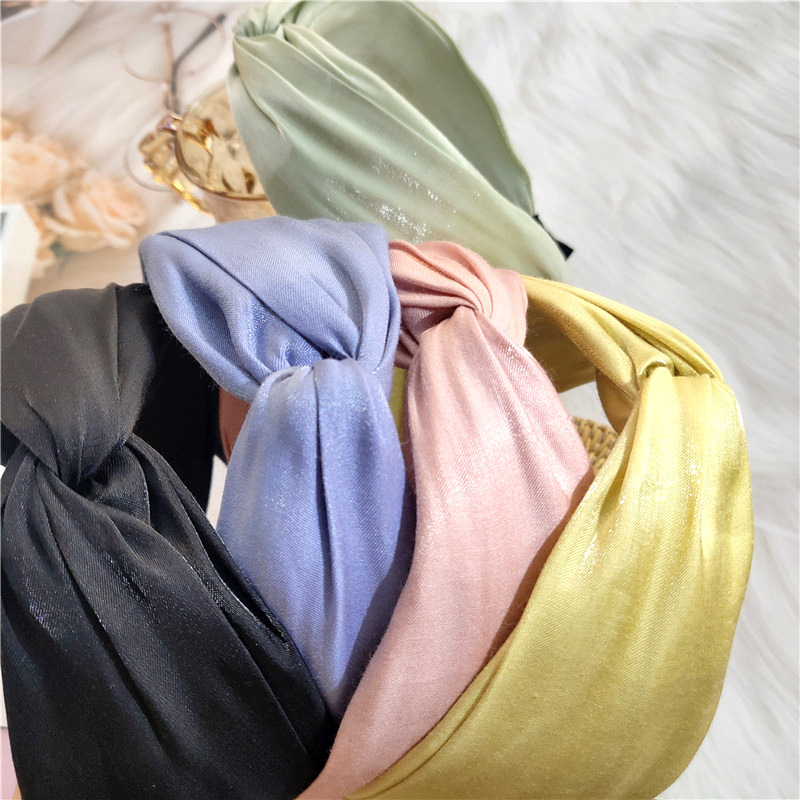 Korean temperament satin-face summer micro-light sweet and beautiful teenage girl retro wide side knotted cross hair stirrup