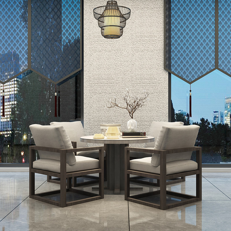 New Chinese table modern small family table dining table combination Neoclassical all-solid wood round table four chairs