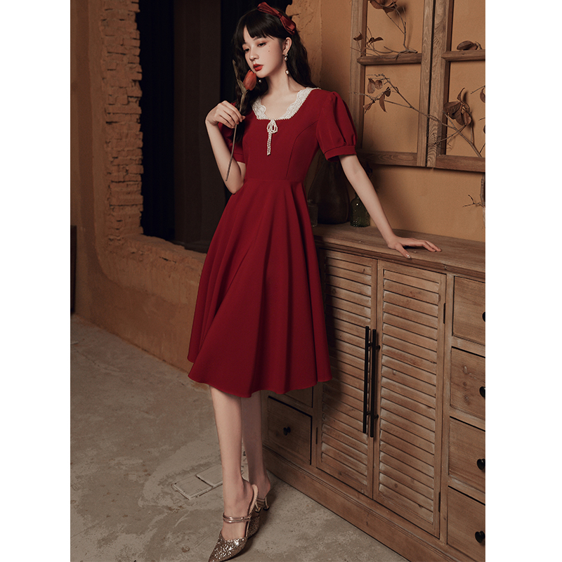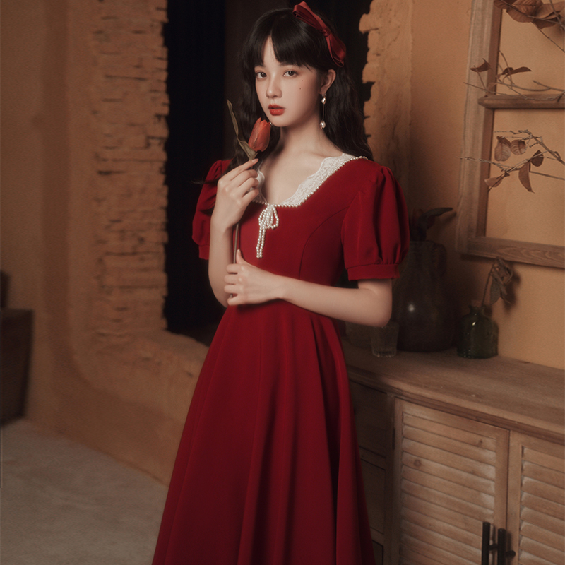 Pregnant woman toast the bride covered with red normally can wear the engagement back door big size gown dress for women's summer