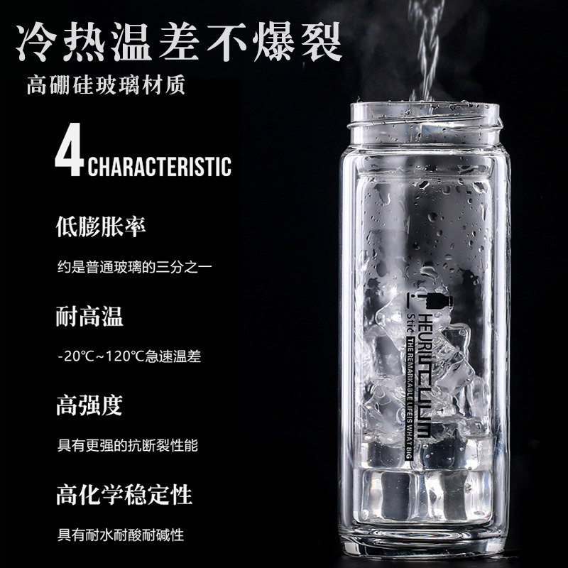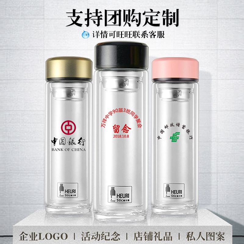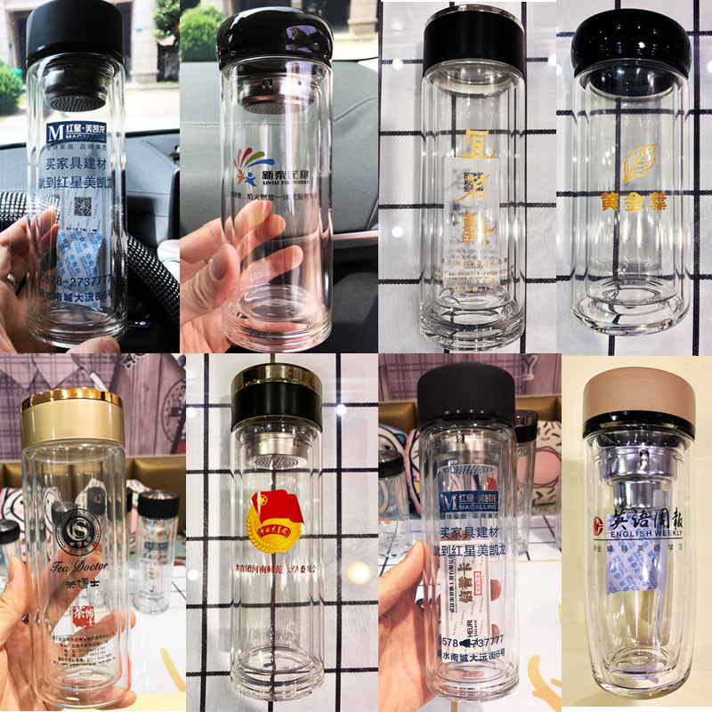 Double glaze glass water cup custom logo printed lettering advertising cup wholesale tea cup opening small gift giveaway