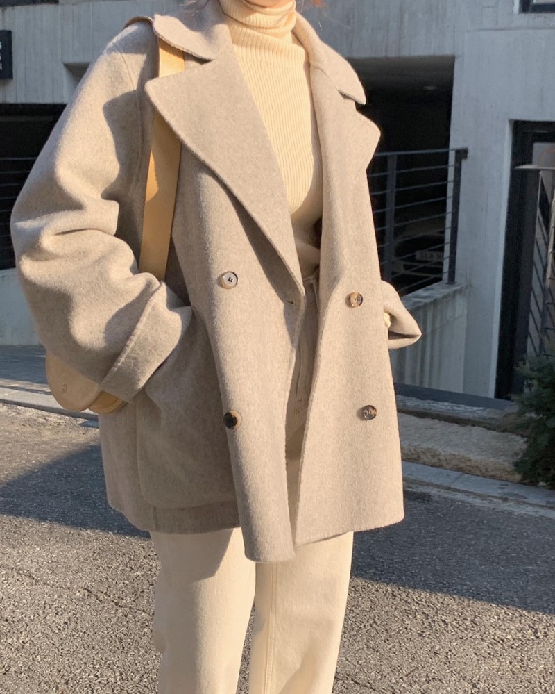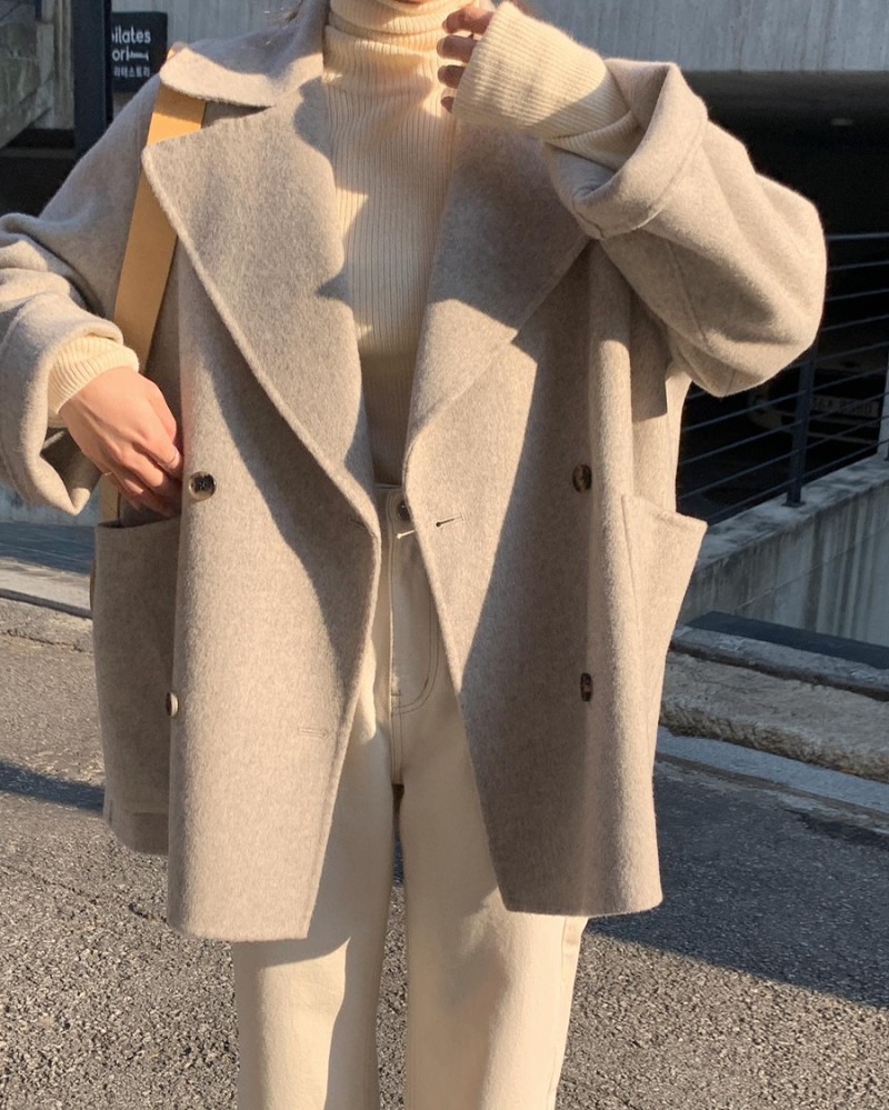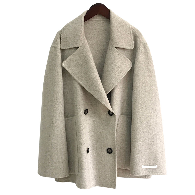 2021 autumn and winter new temperament big double-sided cashmere big coat woman short and small sub oat color fur coat