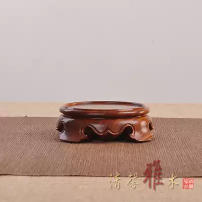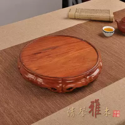 Redwood monolithic carved solid wood round teapot base built jade stone antique vase bonsai ornaments base