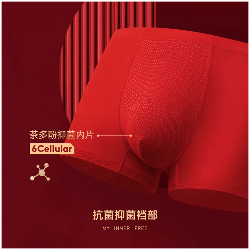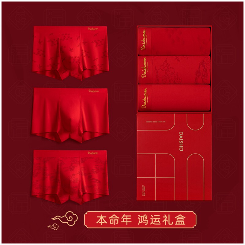 3 Ben-life years men's underwear Men's flat corner pants Modale gift box No marks Big red wedding Tiger Year Pants head