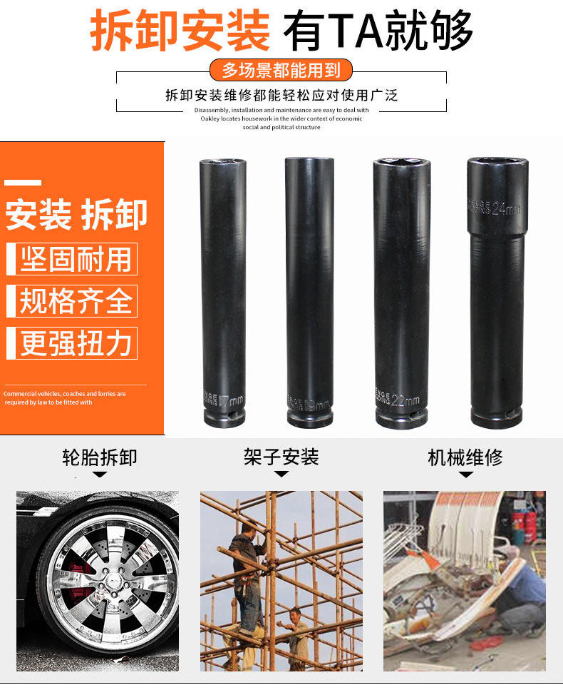 1 2 electric screwdriver 150mm lengthened hexagonal sleeve high-strength thickened plate head shelf woodworking 22 pneumatic wrench head