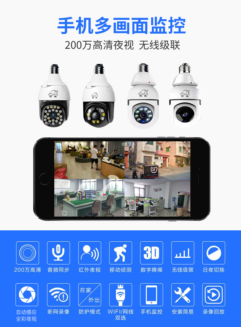 Home Panoramic Wireless Camera HD Night Vision Monitor Panoramic 360 Degree Mobile Phone Wifi Remote Outdoor Ball