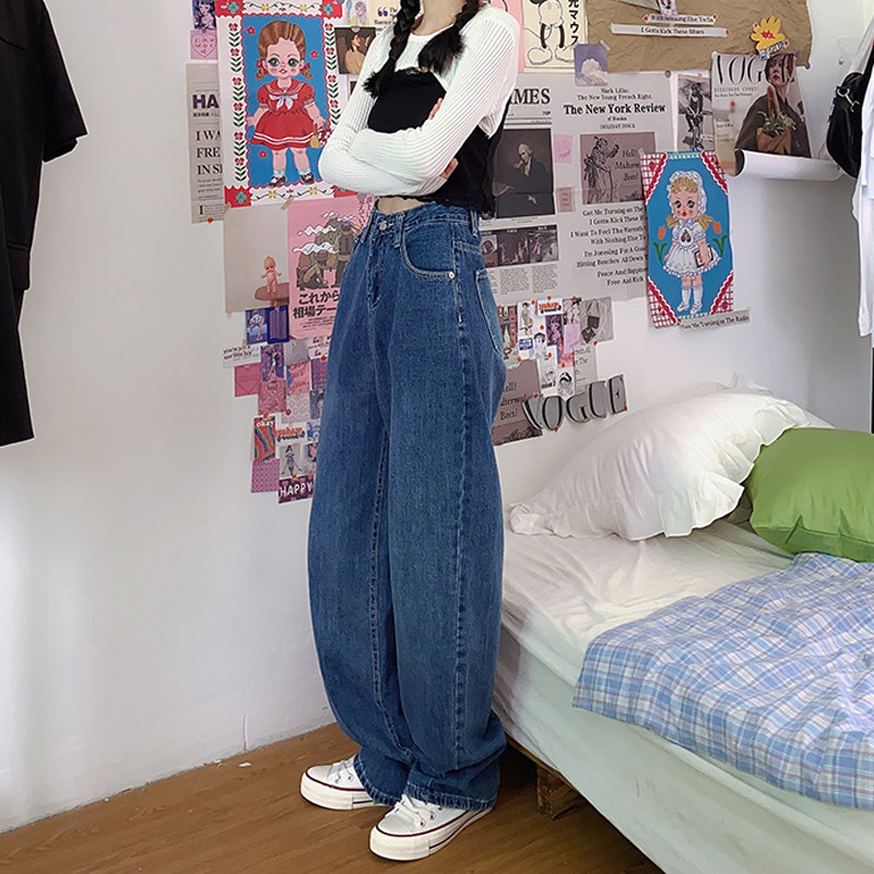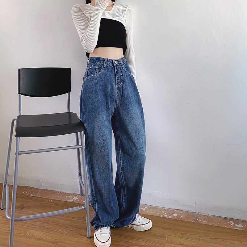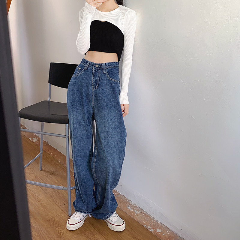Flower field window wide leg jeans women's high waist straight tube loose retro Hong Kong style versatile thin high mopping pants