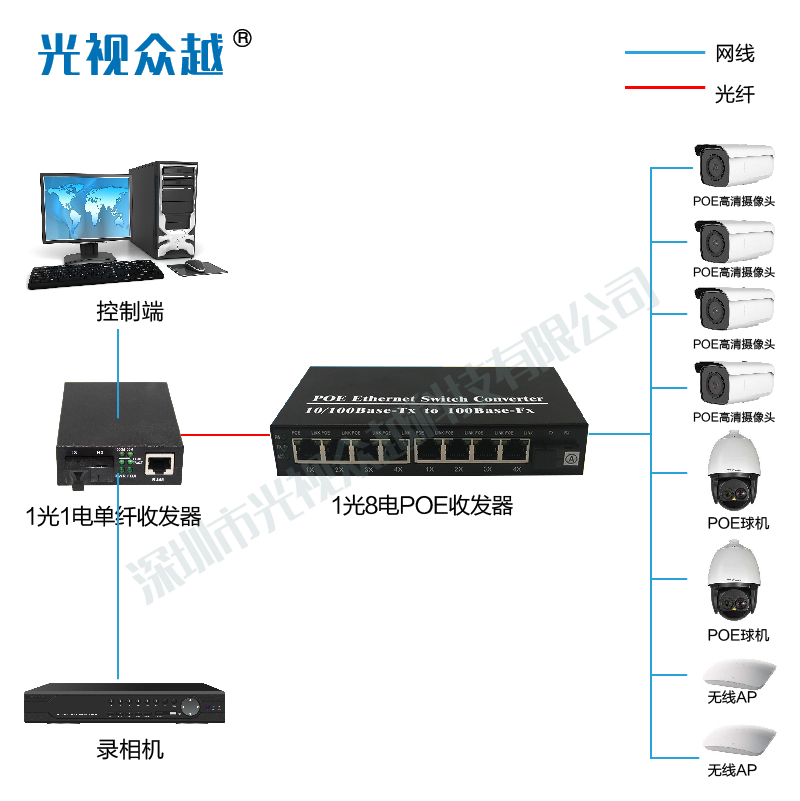 1 optical 8 electrical POE fiber optic transceiver single-mode single fiber one optical eight electrical poe switch standard 48V power supply POE