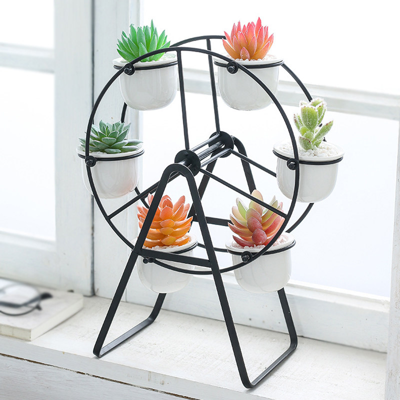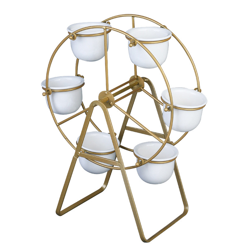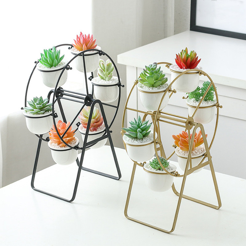 Ceramic basin (two without plants and earth) Iron art Ferris wheel (golden flower shelf 4 basins) Iron art Ferris wheel (black flower shelf 4 basins) Iron art Ferris wheel (golden flower shelf 6 pots) iron
