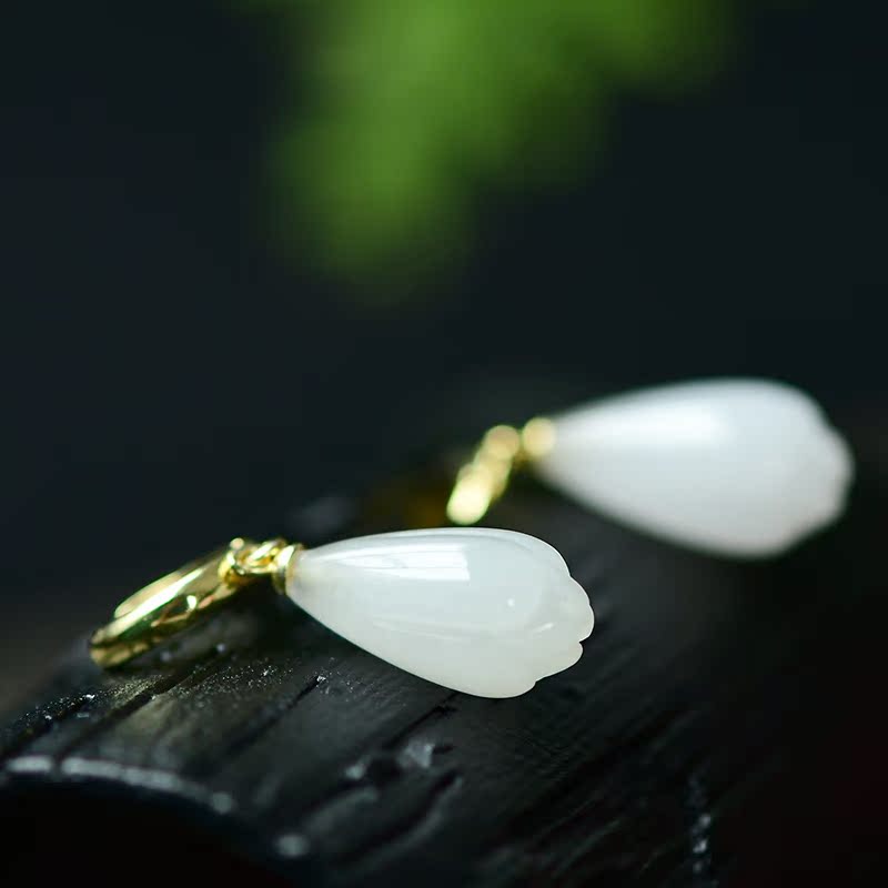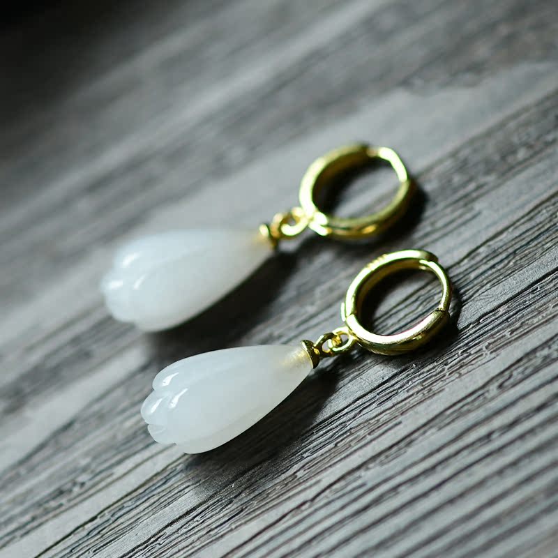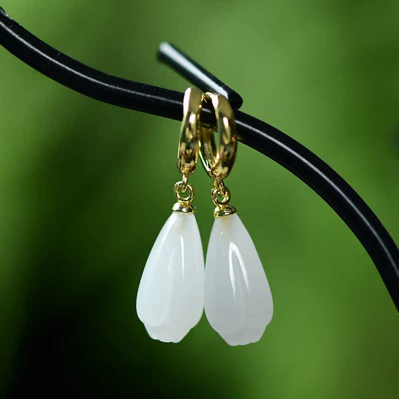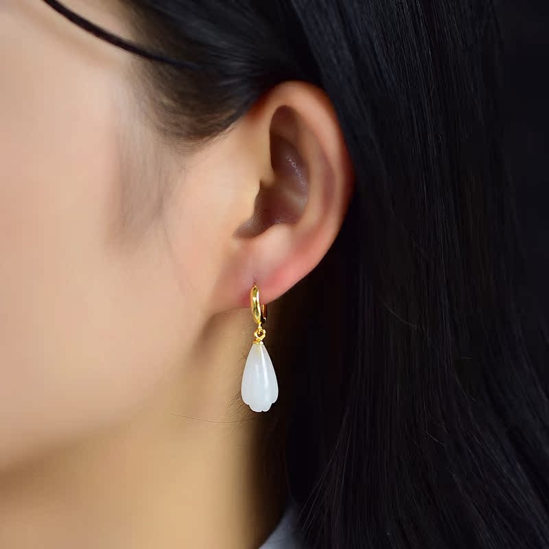 s925 silver inlaid Hetian jade white jade women's circle temperament simple fashion earrings earrings earrings hypoallergenic