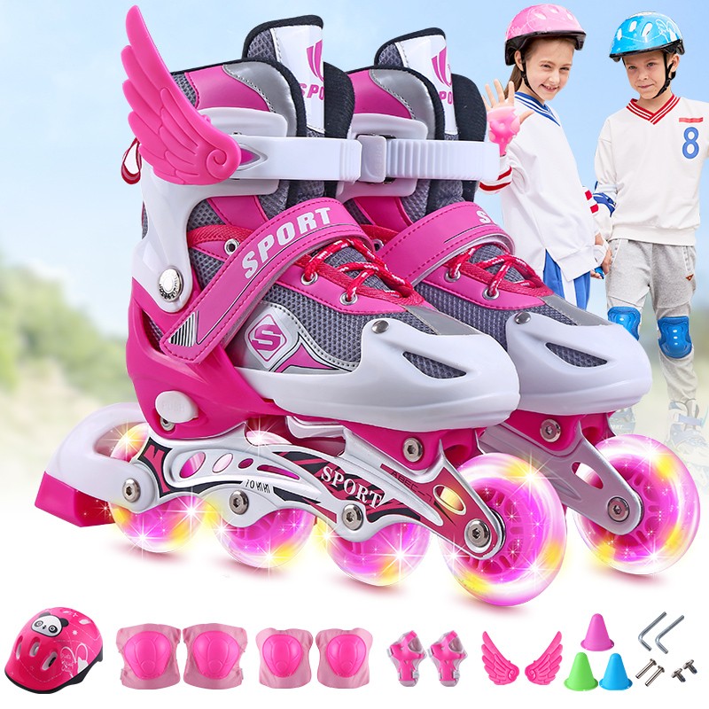 Skating skates Children's full set of boys and girls skating roller skates Roller skates for beginners Children Medium and large children can be adjusted