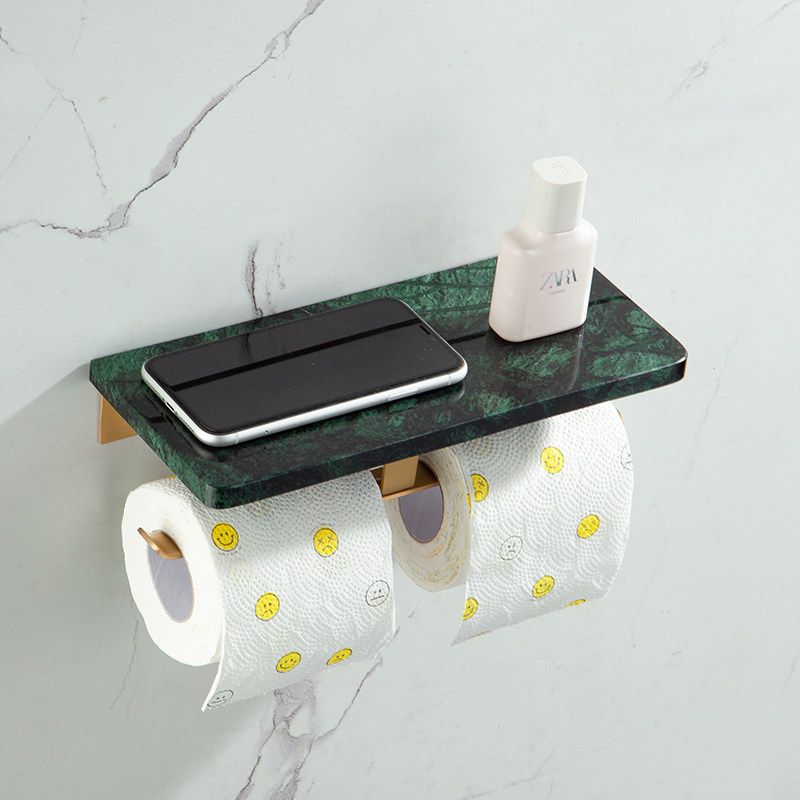 Full Copper Wire Drawing Gold Phone Paper Towel Rack Makeup Room Light Lavish Marble Hotel Rolls Toilet Paper Rack Shelf Toilet Paper Shelf