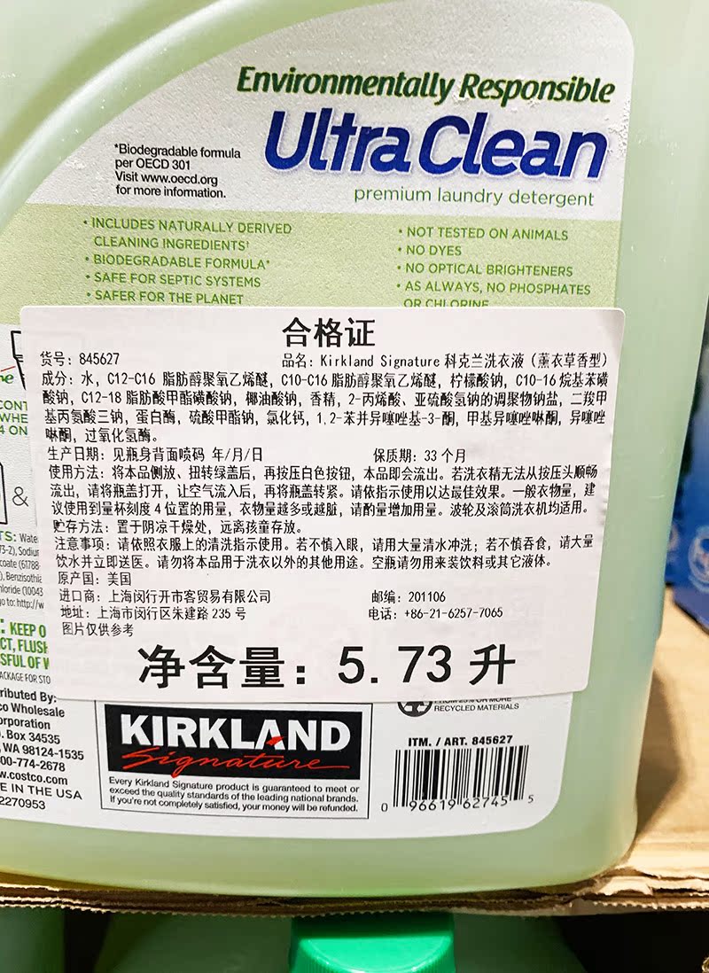 Costco USA imports KIRKLAND Kirkland Clothing Lavender Vegetable Lavender Oil stains