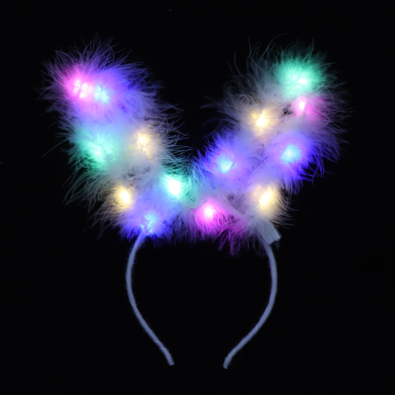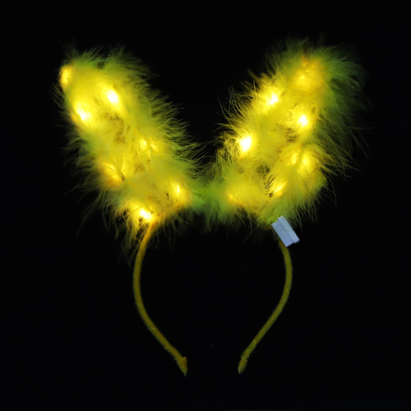 New lengthened 14 lights gold feather rabbit ears headdress headband with lights luminous headband night market luminous toys