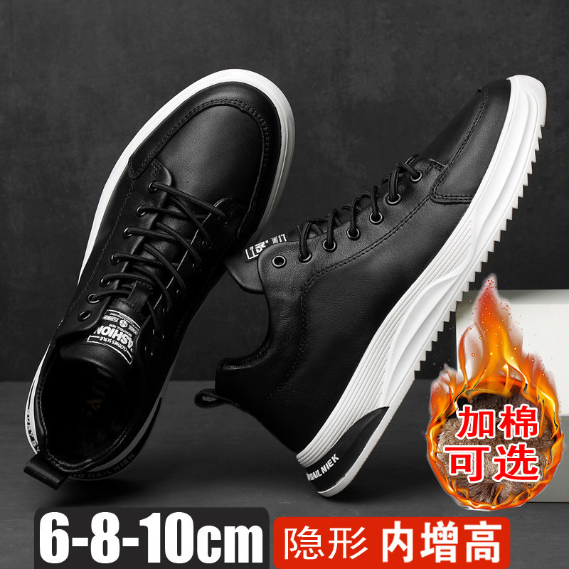 Heightening shoe men 8CM genuine leather 2022 new tide autumn winter casual shoes 10 Invisible inner heightening 6 small white high cylinder plate shoes