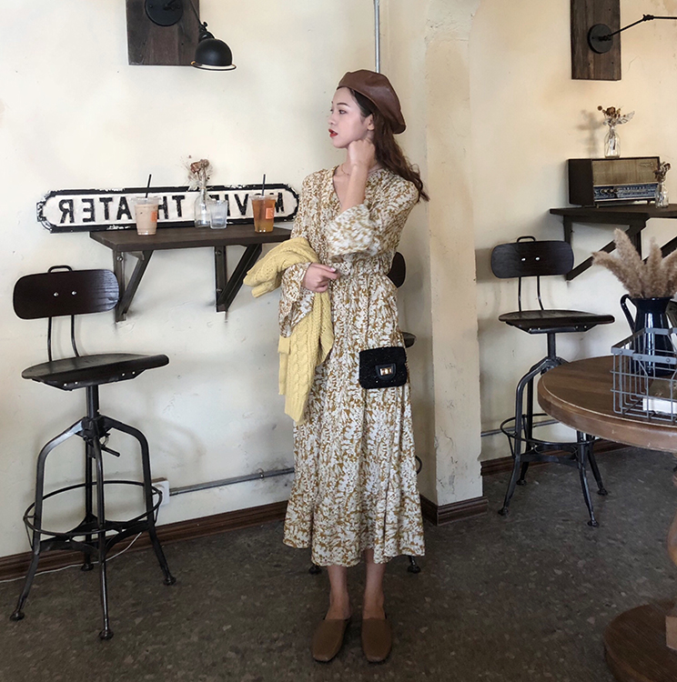 Floral skirt Sweater suit One-piece sweater One-piece floral dress