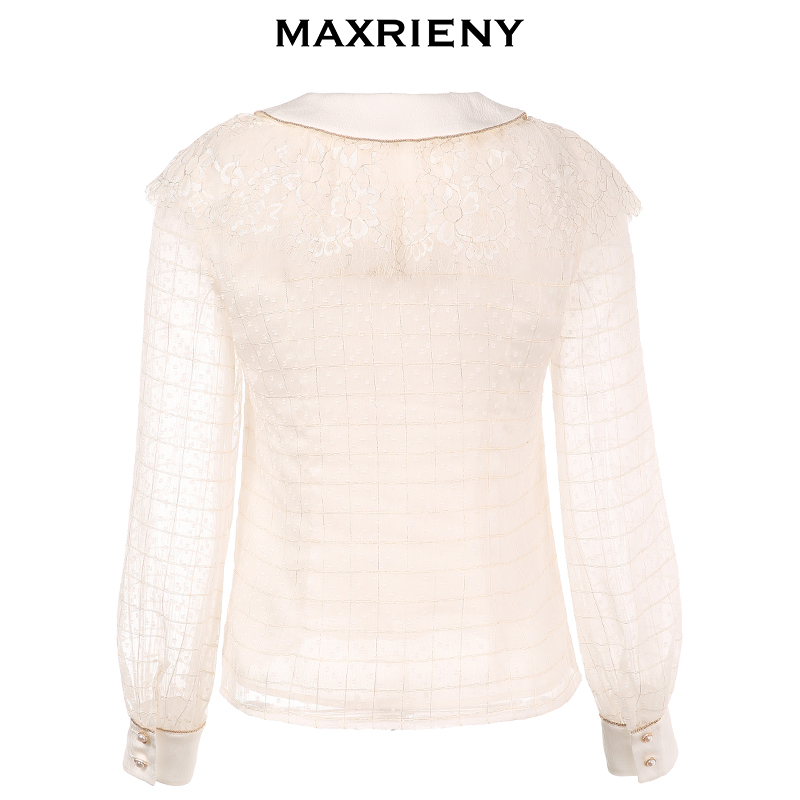 MAXRIENY2020 Autumn New Vintage Long Sleeve Lace Shirt Top All-match Slim Thin Shirt