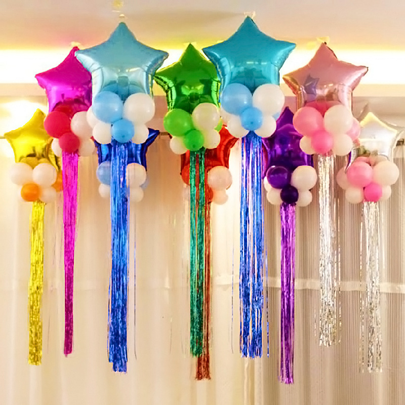 Rain silk balloon Tassel Birthday party decoration Wedding decoration supplies Rain silk curtain pull flower stage background wall color bar