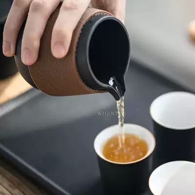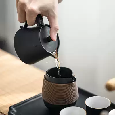 Wen said) Japanese black sand glaze teapot tea set set simple home living room kung fu ceramic tea cup tea tray