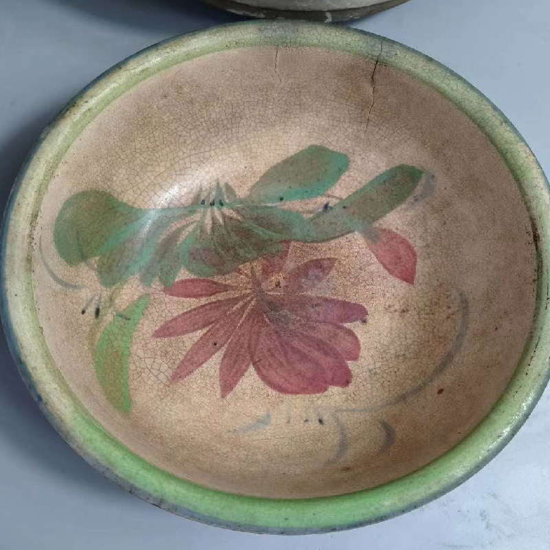 Folklore nostalgic collection of old objects old-fashioned hand-painted porcelain basins and basins farmhouse homestay retro decoration ornaments