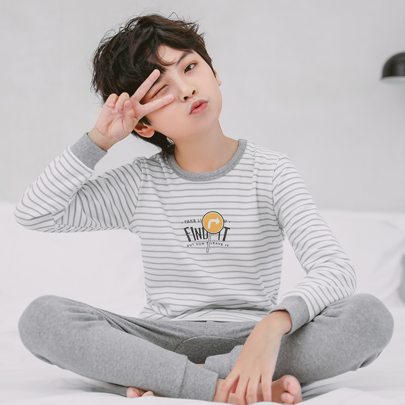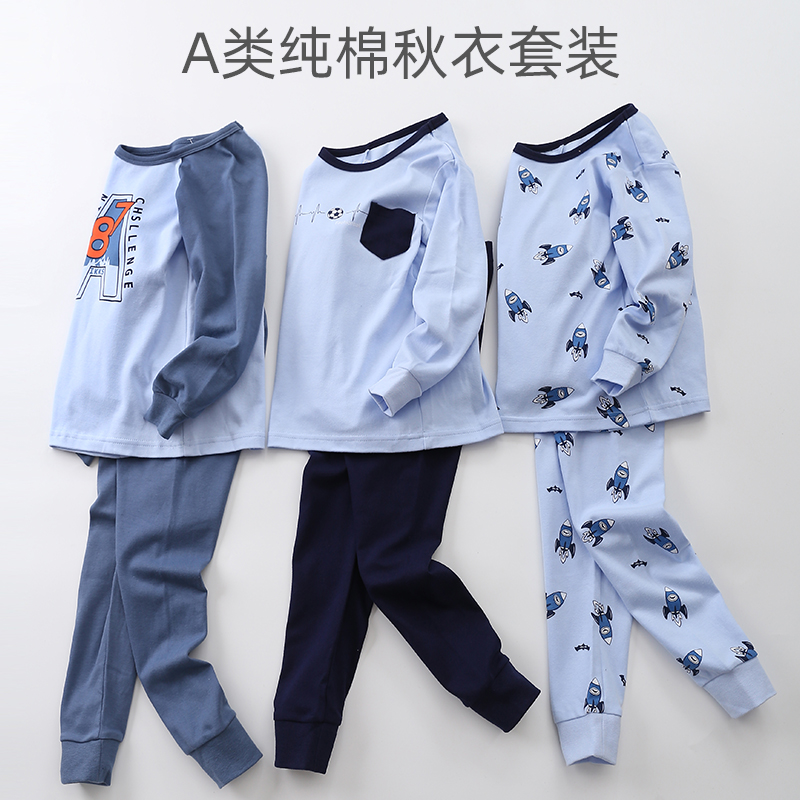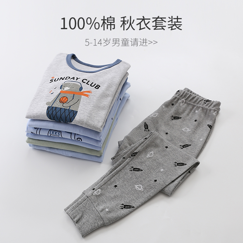 Children's autumn clothes Autumn pants set Spring and autumn pure cotton pajamas Boys cotton sweater Medium and large boys and children's thermal underwear cotton