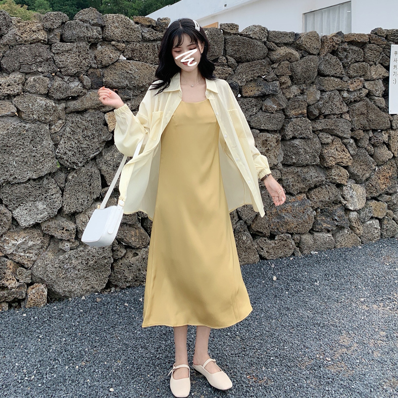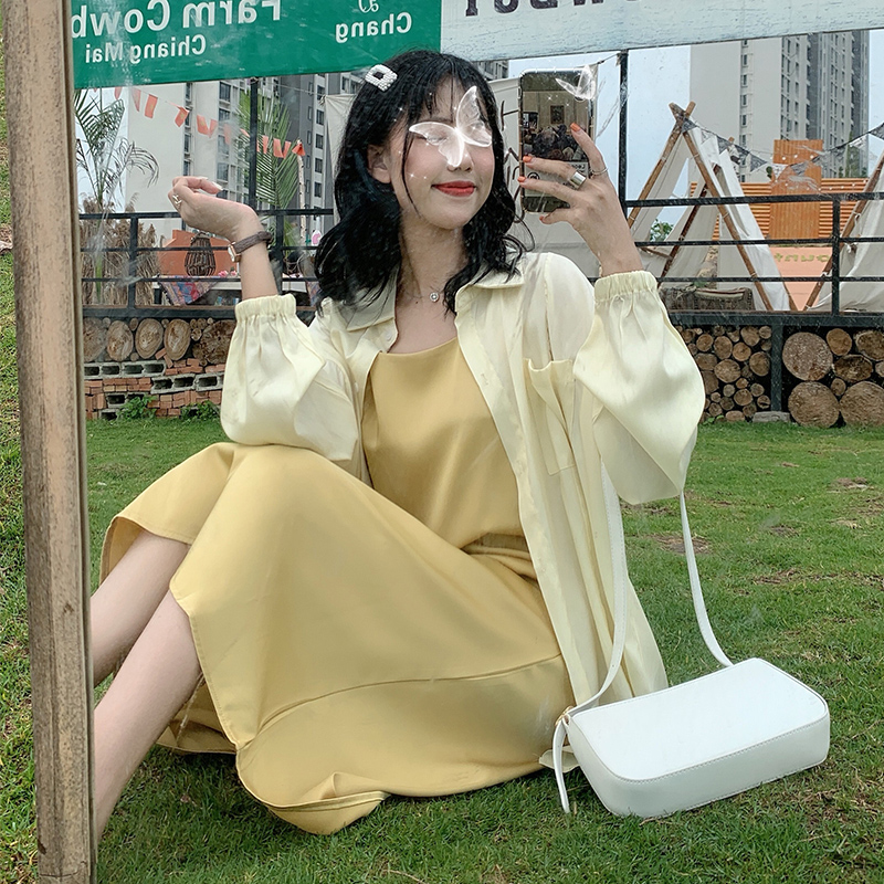 Spring 2021 nian new French sling Yangpai of early spring sen xi may Salt sweet light ripe wind dress sub-