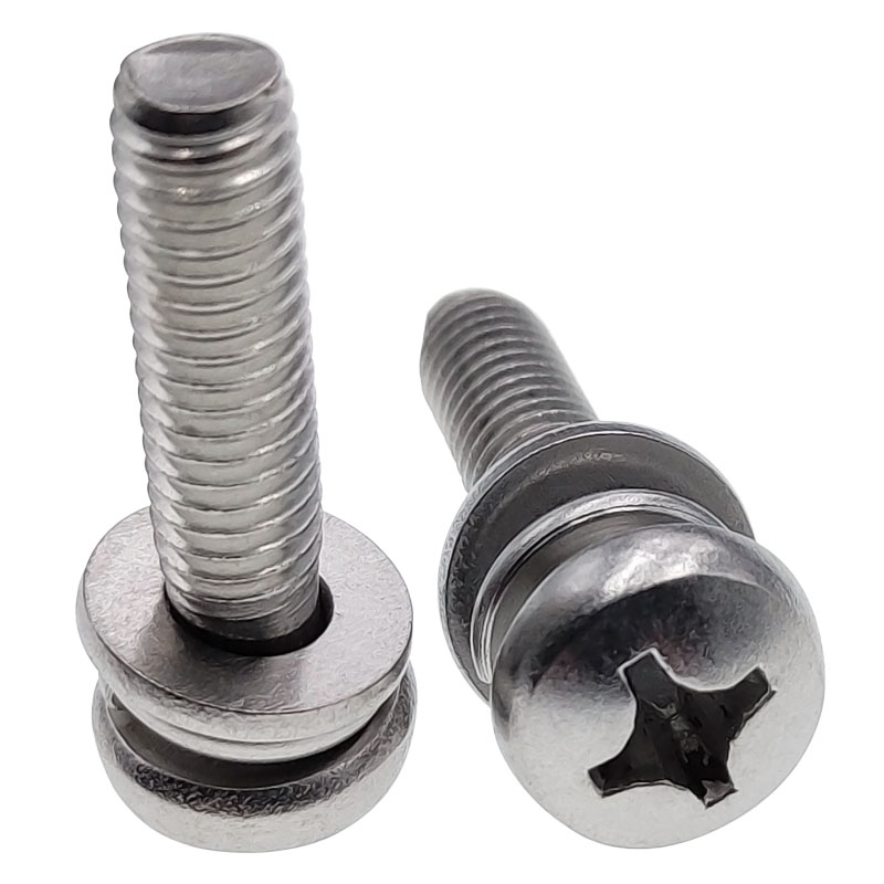 Dongming 304 cross disc head screw spring washer and flat pad three combination screw GB9074 4 M5 6 8