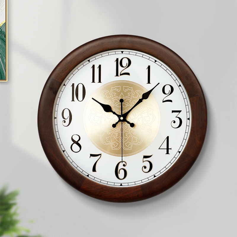European-style solid wood wall clock living room home fashion hanging wall clock watch simple modern bedroom round hanging watch light luxury atmosphere